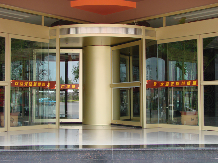 | 绕柱旋转门的门扇为绕柱旋转,外观严谨与建筑整体统一协调,用于门洞有支撑柱的特殊场合,方便大量的人流通行,气势宏伟美观。预制高强度铝合金结构,坚固简洁,环柱式分为(两翼、三翼、四翼)智能自动旋转门,它很好的解决了建筑物入口中心有承重结构柱无法安装旋转门的难题。它将承重结构柱包饰起来作为旋转门的中心柱,门扇及展箱绕柱旋转,体现出豪华气派的美感。 |